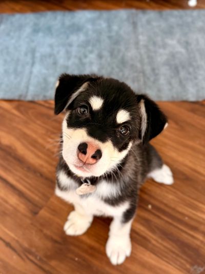 Winter has been an absolute delight since coming into our home. He adores people and we all love him back. He also likes to play with the big dogs, he’s quite submissive, and is responding well to their social cues. He really likes the cat too and rarely plays chase. He can be vocal when left alone; this will likely be something that’s easily trained out. He’s happiest when his people are close by and snuggles up close when he wants to rest.